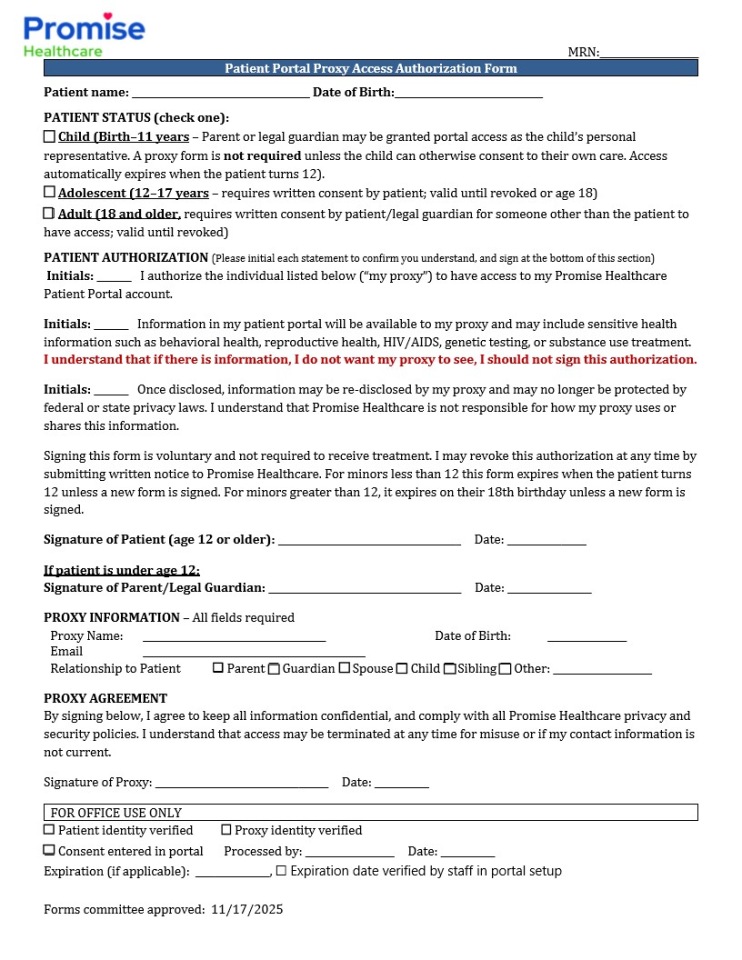 Patient Portal Proxy Form
